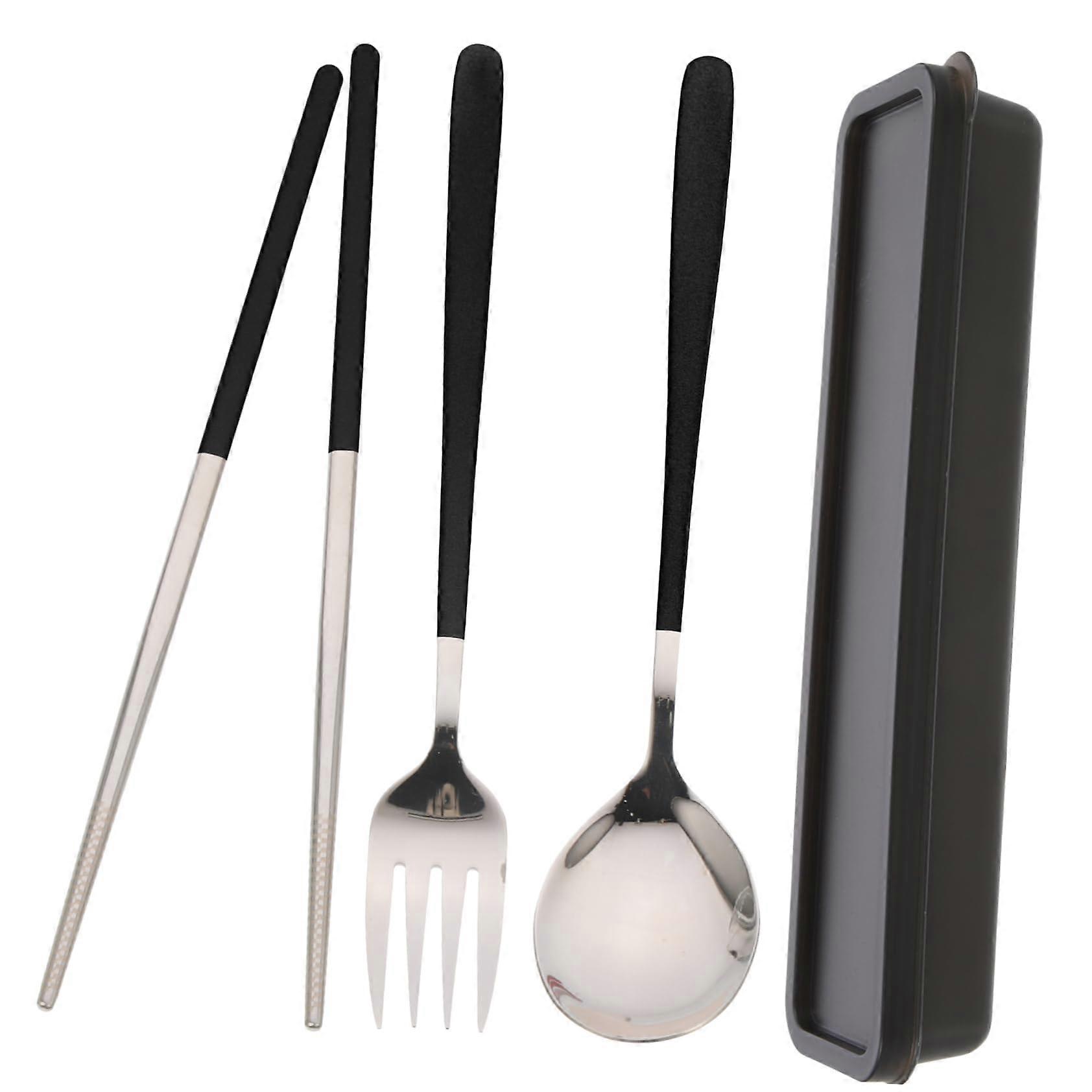 Portable Stainless Steel Utensils Set With Case 3-Piece Chopsticks Spoon Fork Black Silver Travel Utensils For Lunch Box