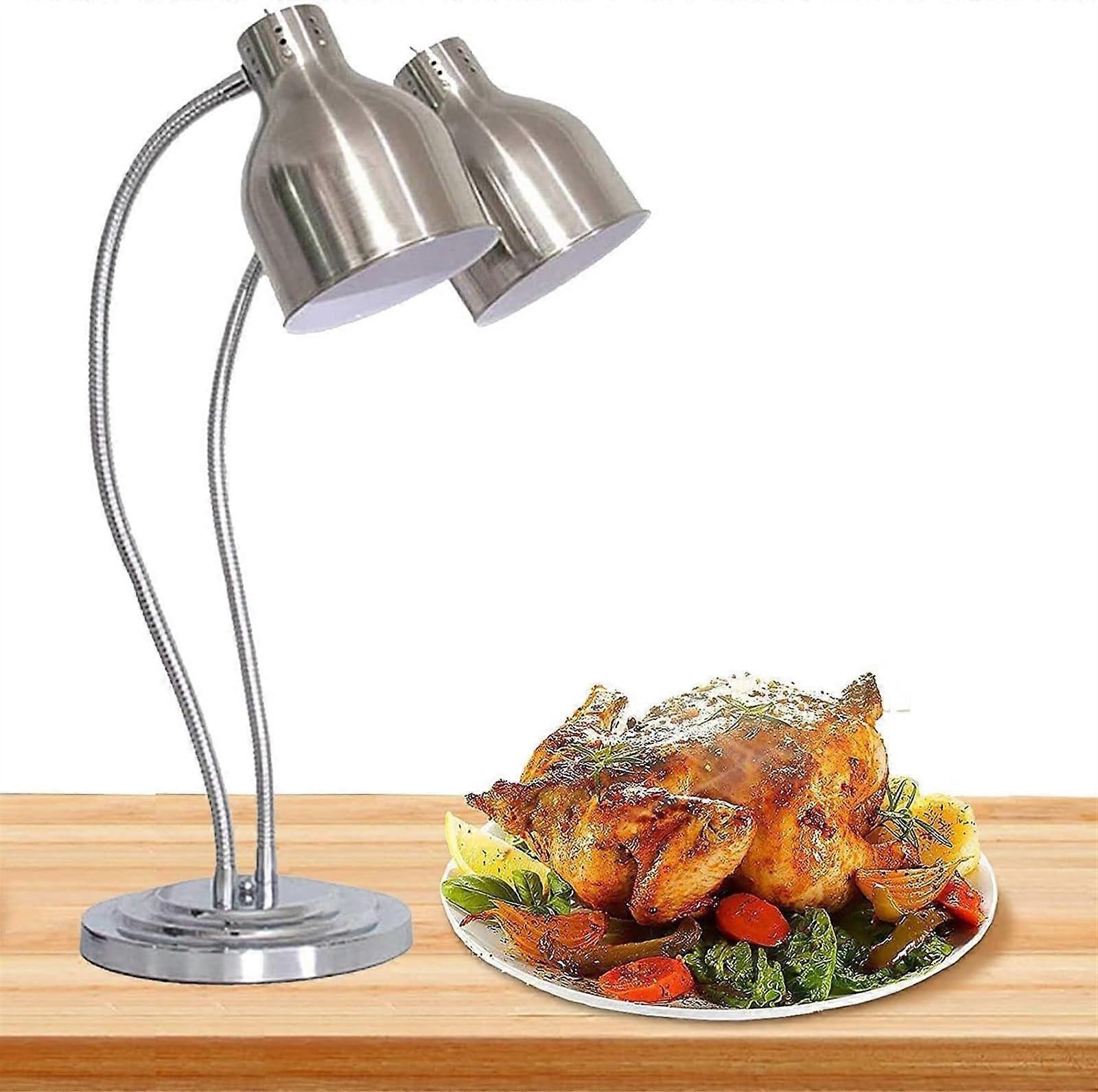 Commercial Food Warmer - Double-Head Electric Heating Lamp, 500W Portable Stainless Steel Buffet Food Warmer for Catering