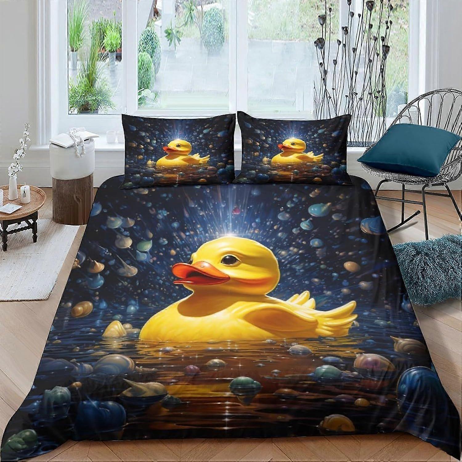 t85 Cartoon Duck 3 Pieces Cartoon Duvet Cover Sets for Young Teenager Printed Comforter Cover Lovely Design Brown-White Quilt Cover Matching Pillow Ca