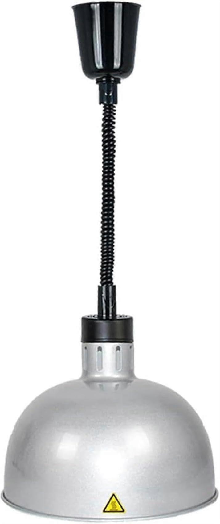 - Retractable Design: This hanging heat lamp features a high-elasticity spiral wire that can extend from 60 cm to 180 cm, ensuring flexibility and convenience for various setups. It is built to withstand approximately 100,000 stretches. - Durable Heat-Resistant Screen: The lamp's 29 cm diameter screen is designed to effectively heat food while providing an irradiation range of 44 cm. Its sturdy construction ensures longevity and resistance to high temperatures. - Efficient 250 W Bulb: Equipped with an infrared heat bulb, this lamp offers excellent light transmission and enhanced heat conversion, allowing for rapid heating to keep your food warm. - Adjustable Functionality: The intuitive lever switch enables easy ignition and shutdown. Additionally, a knob located on the upper disc allows for precise adjustments to the lamp's stretch length, making it user-friendly. Applications: - Ideal for restaurants and food service establishments, this heat lamp keeps dishes warm and ready to serve, enhancing customer satisfaction. - Perfect for home gatherings or parties, providing a reliable way to keep appetizers and buffet items at the desired temperature. - Useful in catering events, ensuring that food remains warm during transport and service. This hanging heat lamp combines functionality with durability, making it an essential tool for anyone looking to maintain food warmth efficiently.