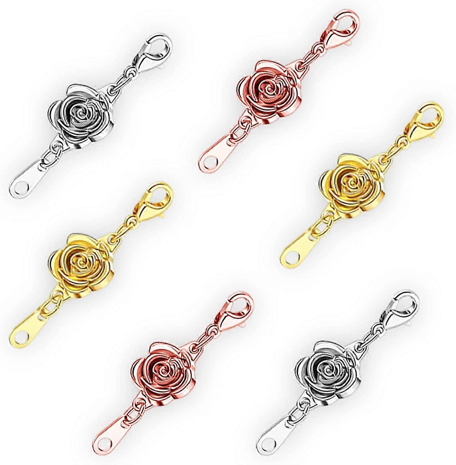 6 Pieces Rose Magnetic Clasp Locking Magnetic Clasp Converter Necklace Clasp Closures Bracelet Extender for Woman Jewelry Necklace Bracelet