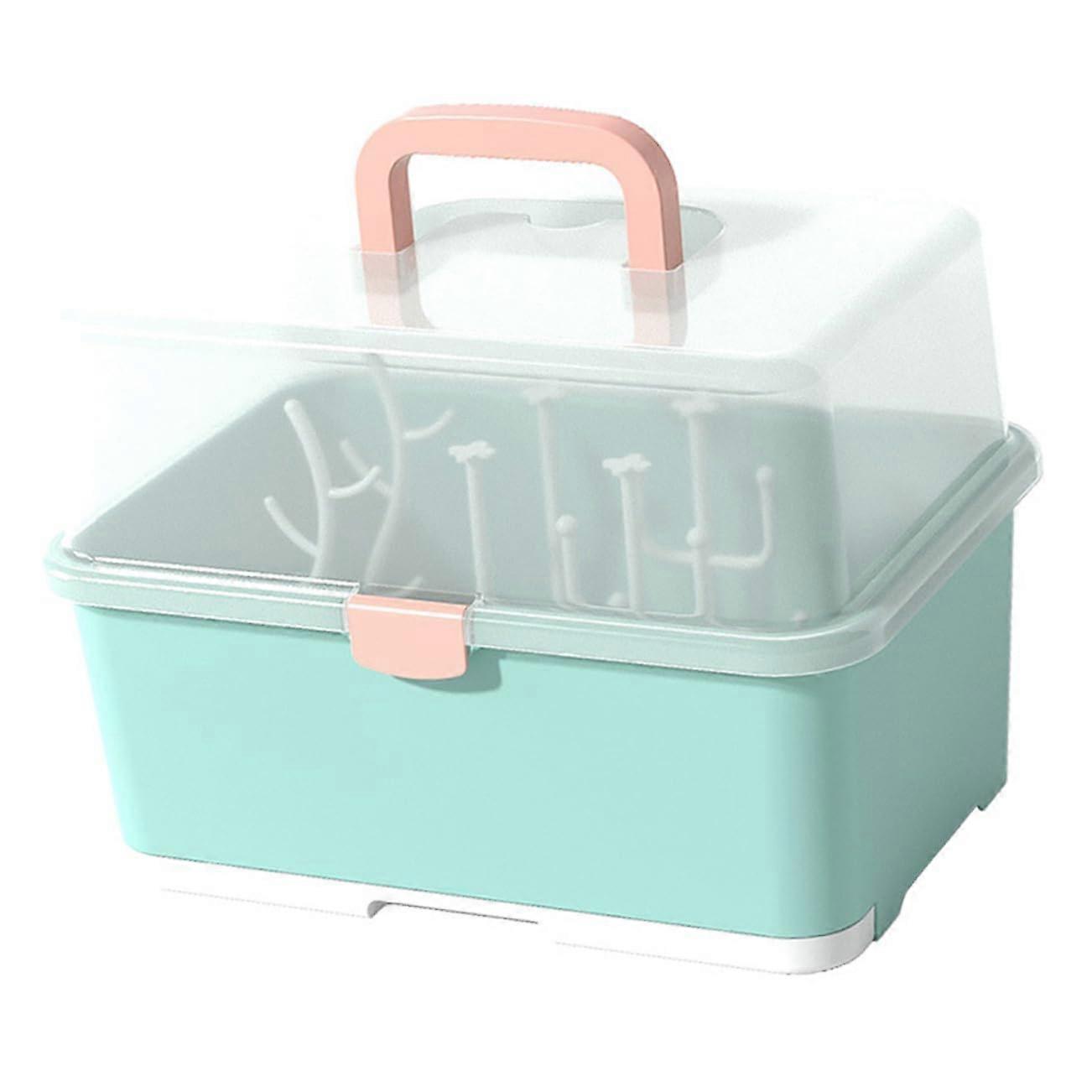 Baby Bottle Storage Box Cover Waterproof Drying Rack For Baby Bottles And Dinnerware Organizer Green