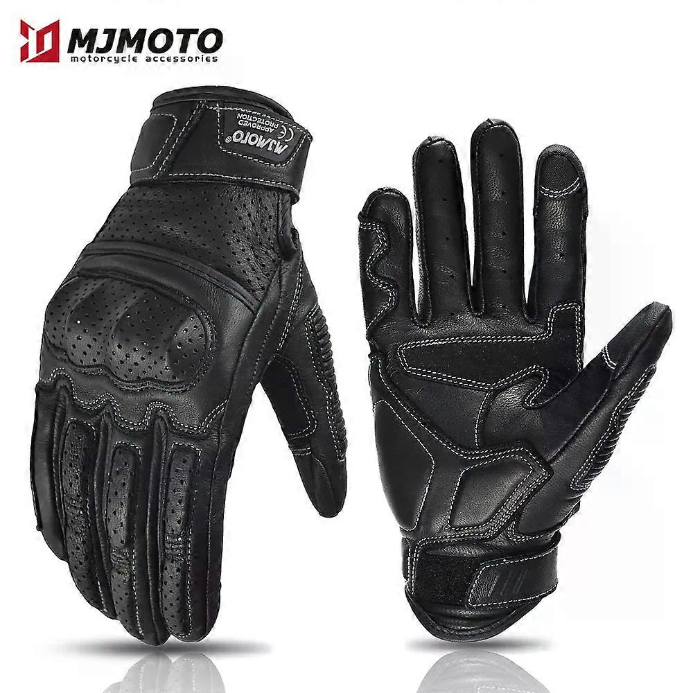 Vintage Leather Motorcycle Gloves CE Certification Summer Perforated Motorbike Racing Gloves Touch Screen Motocross Moto Gloves