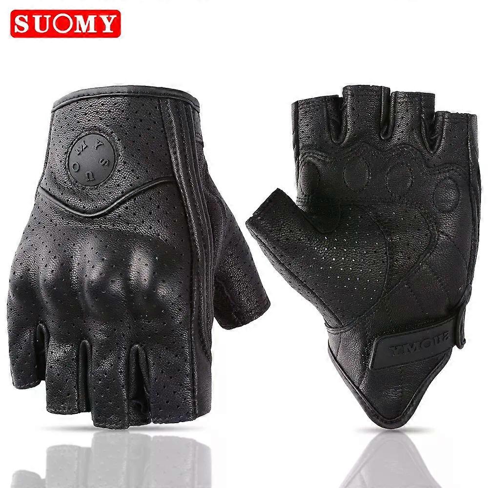 SUOMY Summer Motorcycle Fingerless Gloves Accessories Goatskin Leather Half Finger Gloves Man Women Motocross Gant Moto Guantes