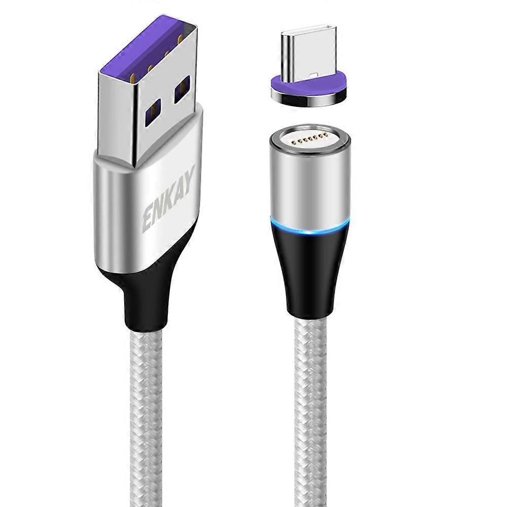 ENKAY HAT PRINCE 1m Magnetic Charging Cable USB to Type-C 5A Fast Charging Data Cord - Silver