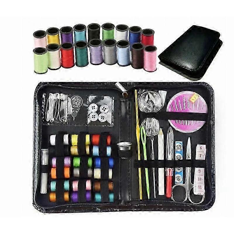 58-Piece Portable Sewing Kit with Black Leather Case, Perfect for UK Family Travel and DIY Repairs