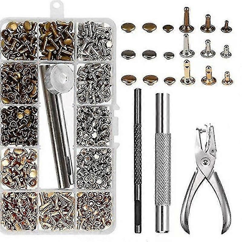 300-Piece Leather Rivet Kit with Double Cap Rivets, 3 Sizes and Professional Punch Pliers for Leathercraft