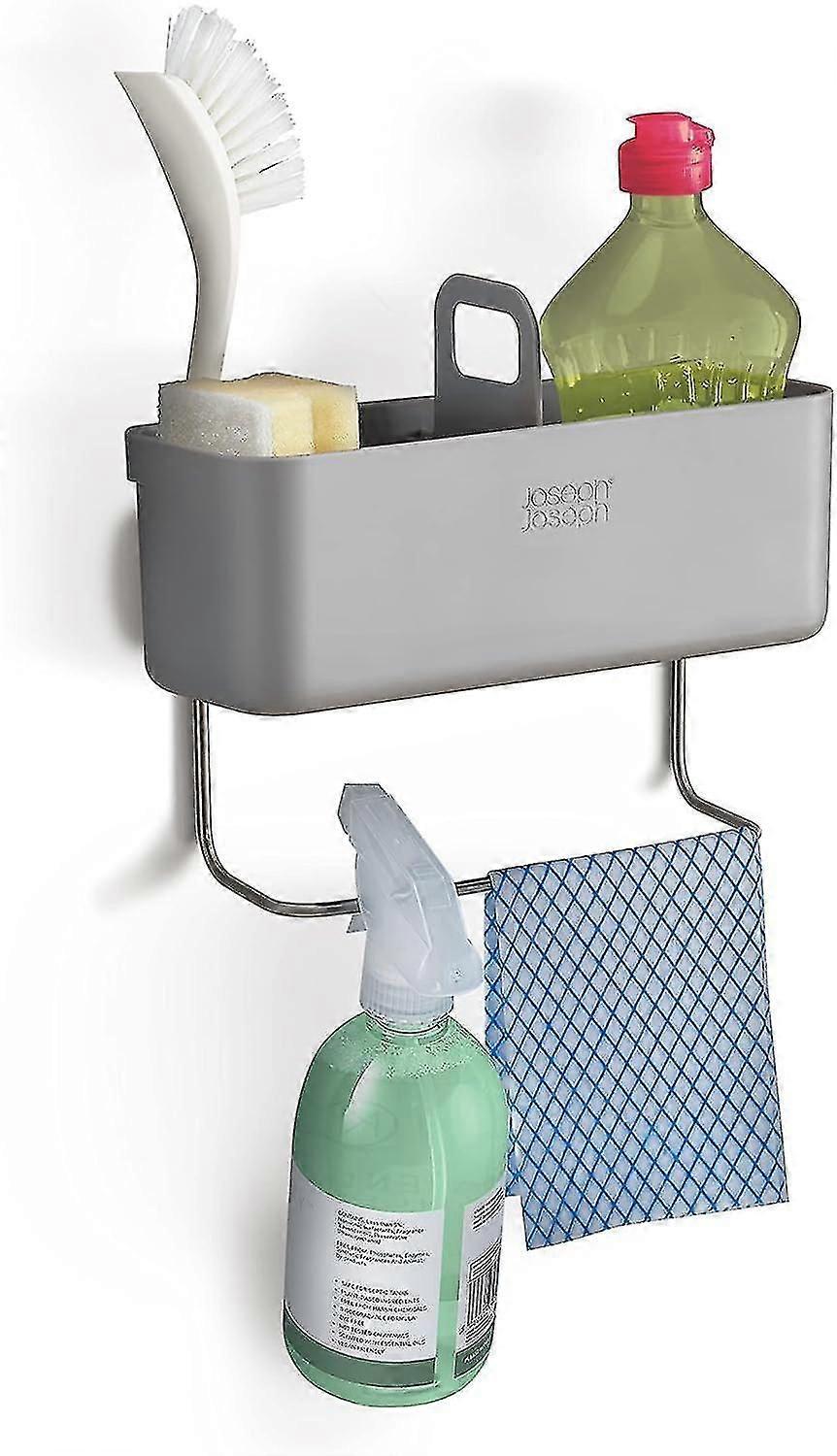 Grey In-Cupboard Kitchen Sink Caddy Organiser for Washing-up Brushes, Sponges, and Dish Cloth Storage