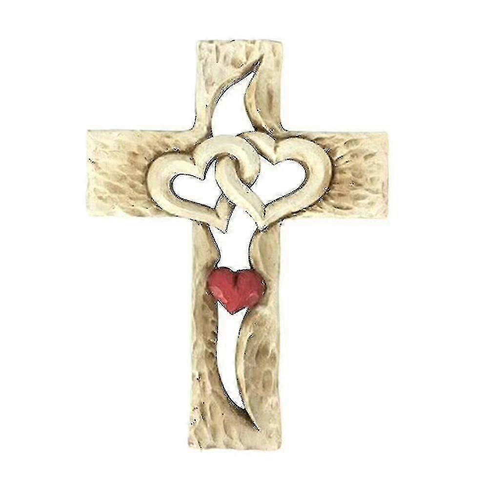 Hand-Carved Wooden Cross Wall Art with Intertwined Hearts - Traditional Home and Office Decoration Piece