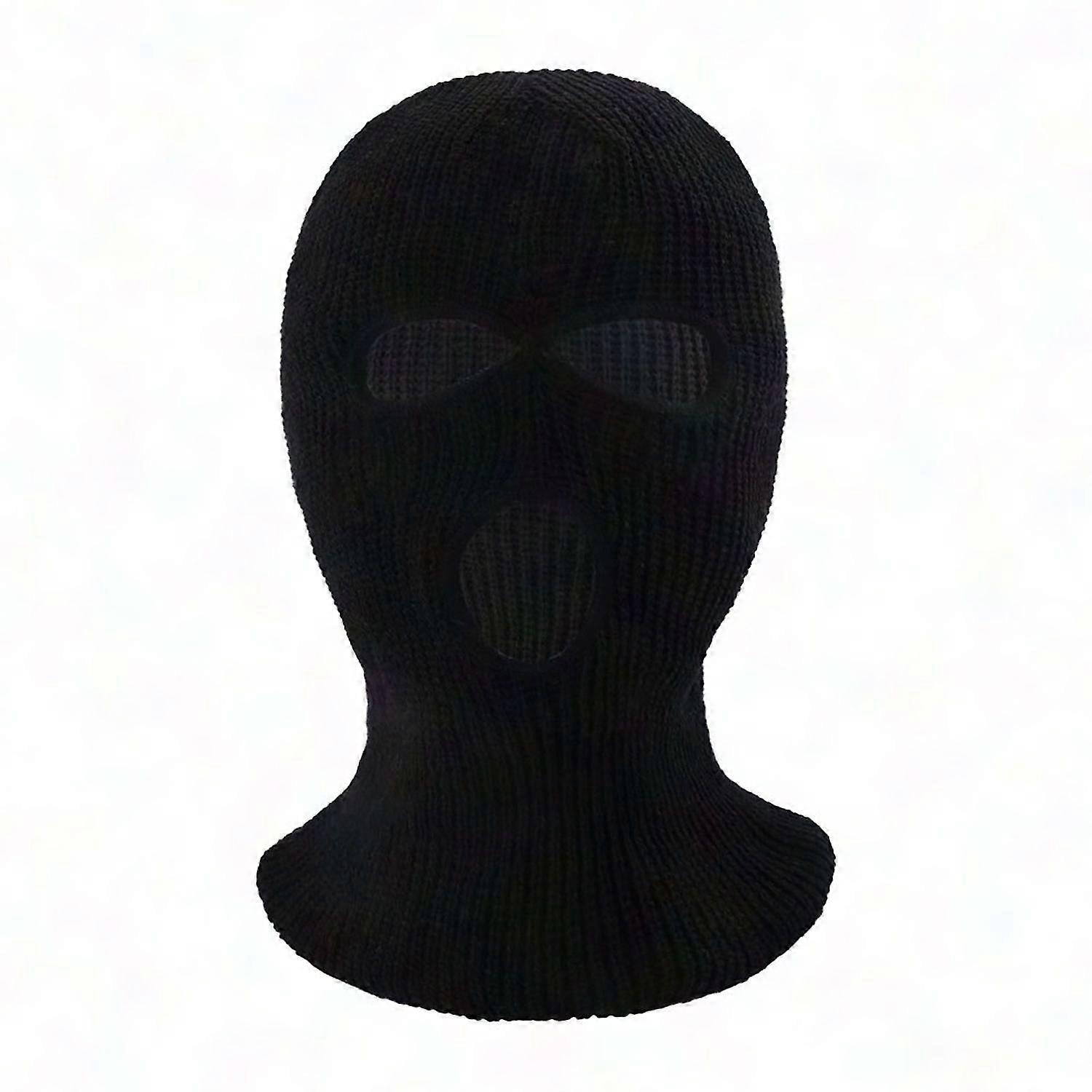 Winter Unisex Knitted Balaclava Hat, Full Face Cover with Three Holes, Solid Color Dome Knit Cap