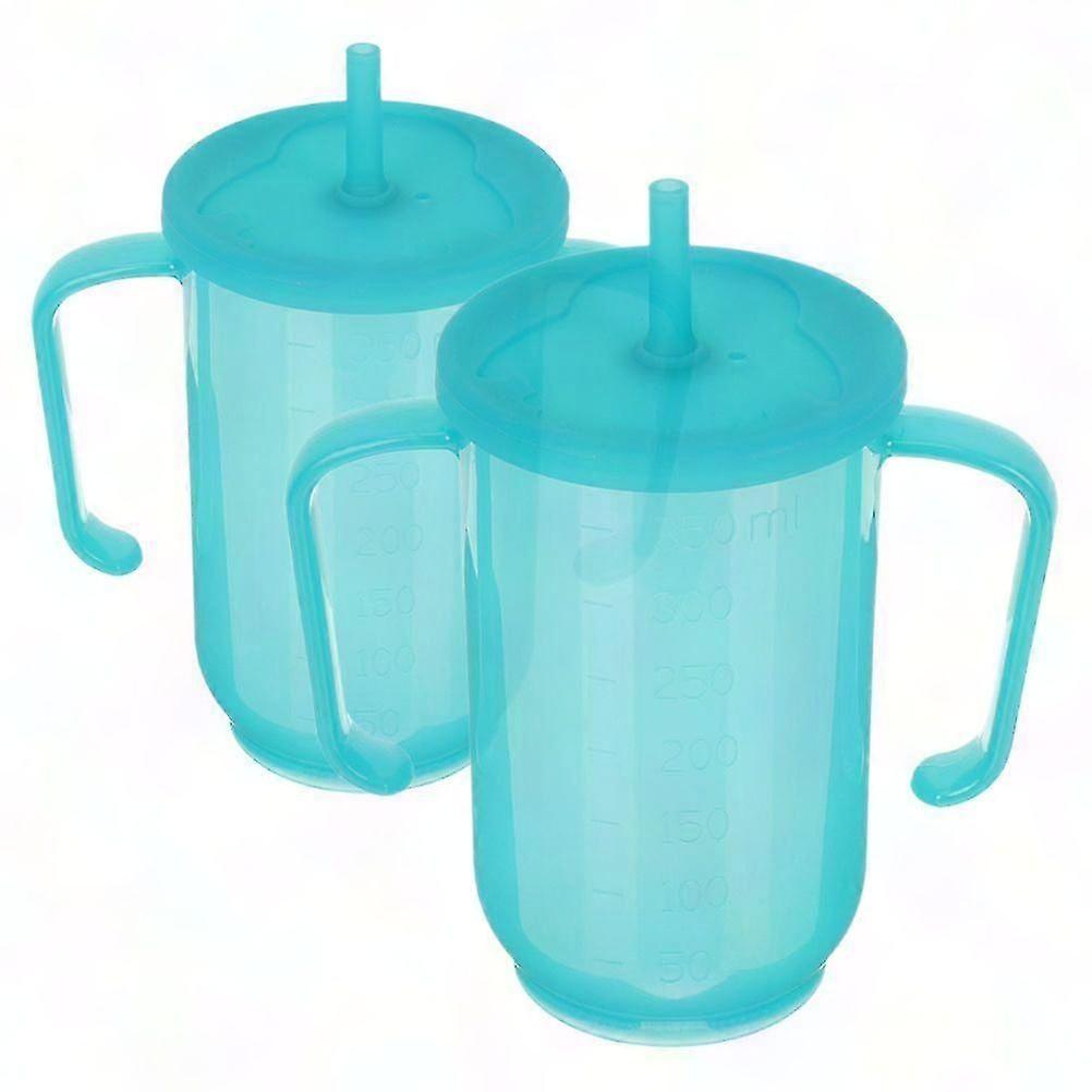 2-Pack Adult Sippy Cups with Straws, Handles for Elderly & Hospital Use, Plastic Drinking Bottles