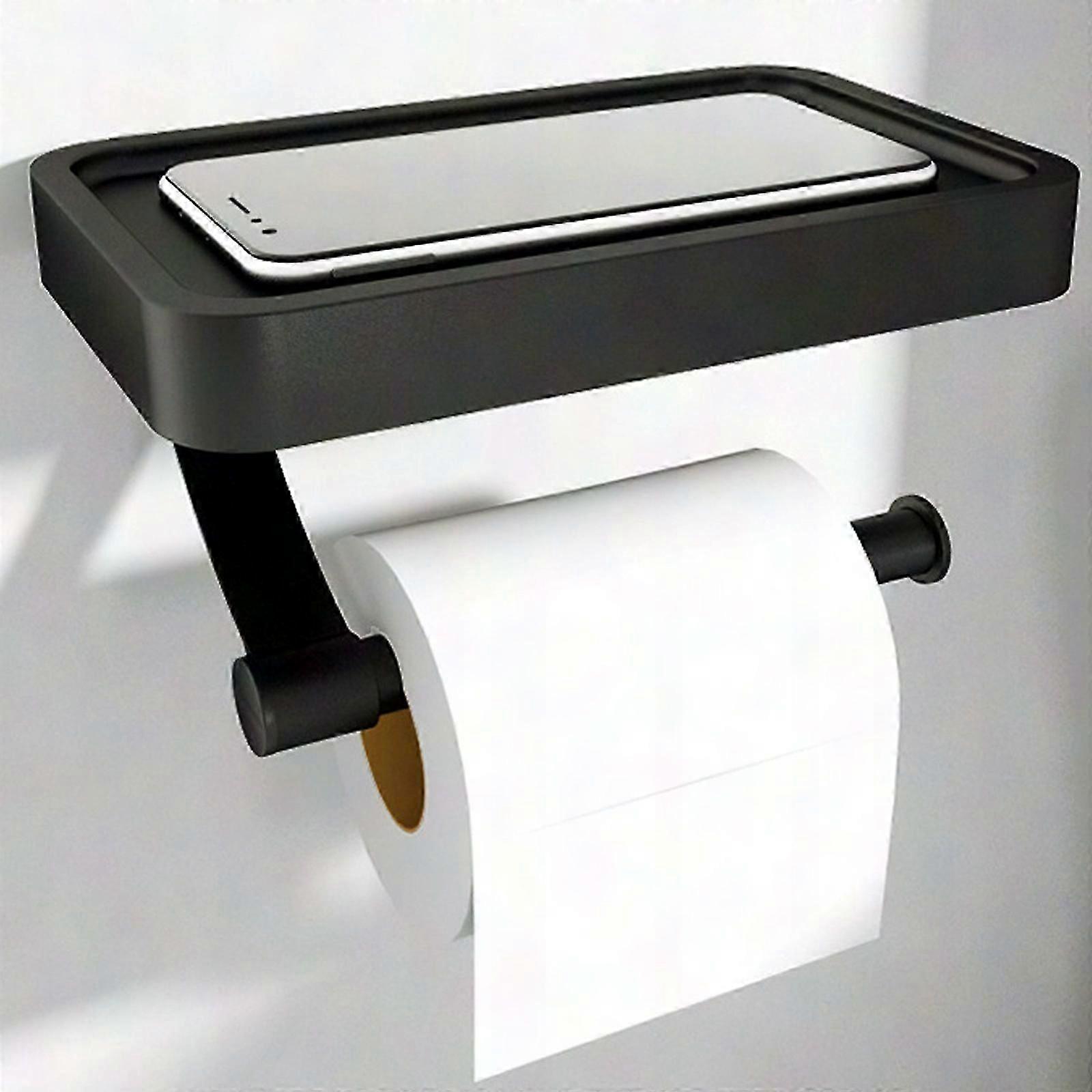 Toilet Paper Holder with Phone Shelf - Wall Mounted Bathroom Organizer
