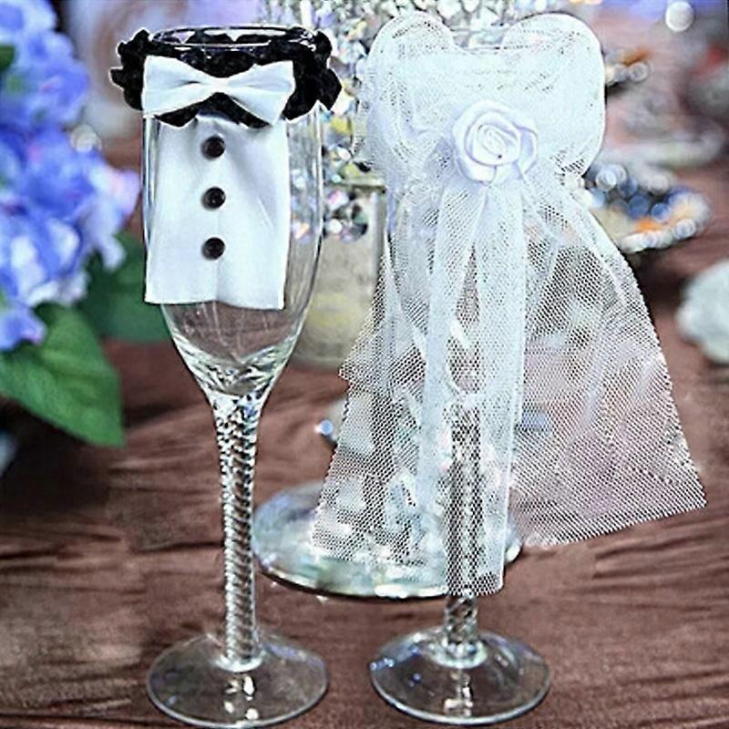 A Pair of Bride and Groom Dress Cups Decoration Wedding Supplies Bride and Groom Dress Cups Decorati