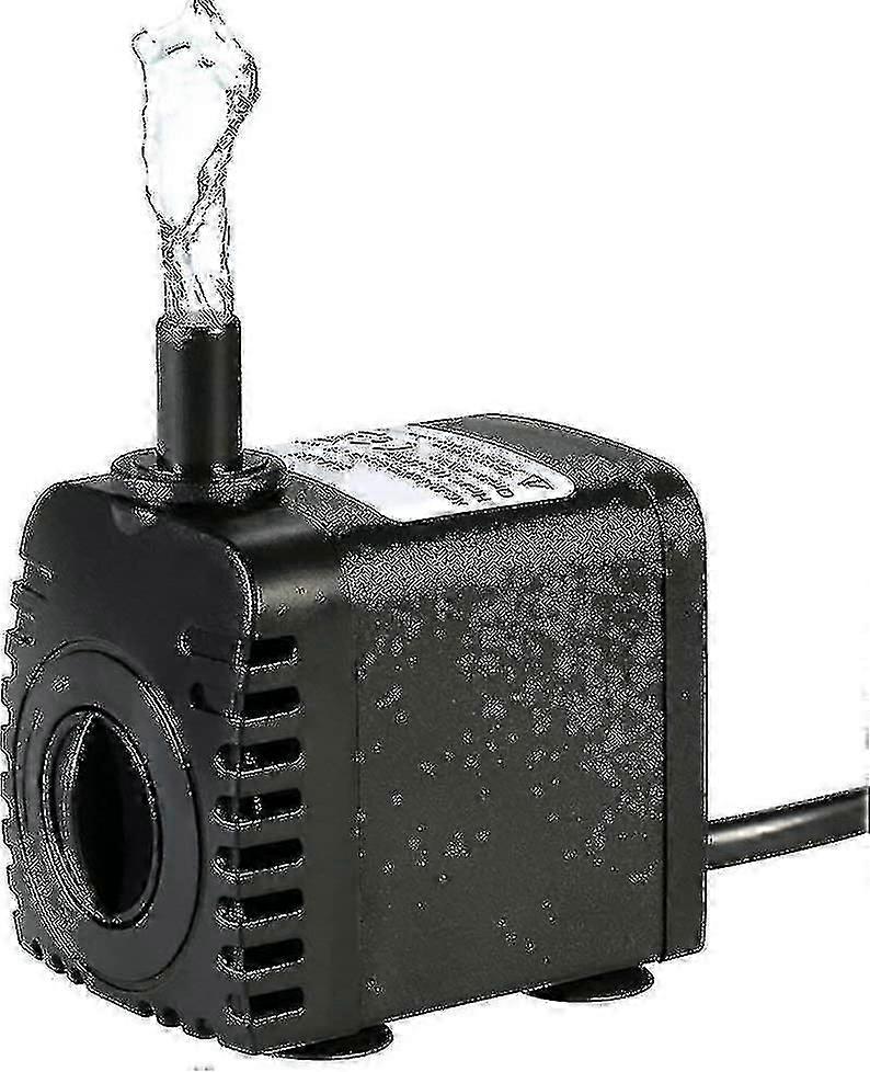 Low noise: The submersible water pump is reliable and durable, and the motor produces low noise, giving you a quiet environment.Adjustable water flow: The pump has 2 nozzles to (0.3 and 0.5 inch) and adjusting knobs, which can easily adjust the flow and provide different water flow effects.High efficiency: 8W of the pump pump, the maximum flow rate is 600L/H, and the lifting height can reach 110-120cm.Easy to use: The 4 strong suction cups at the bottom of the submersible pump are very suitable for installation vertical and horizontal. The small size is not only easy to hide or camouflage, but also easy to disassemble and clean.Wide range of applications: very suitable for small and medium-sized aquariums, desktop fountains , water gardens and hydroponic systems.