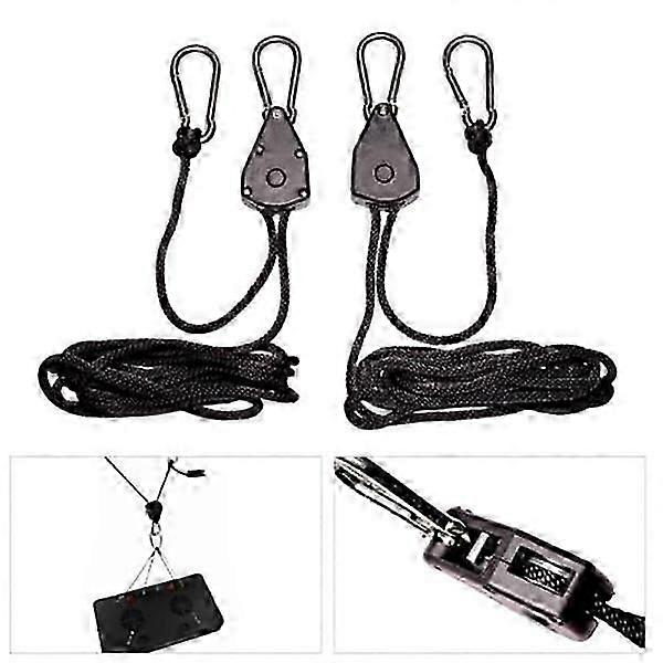 2-Pack Adjustable Ratchet Rope Hangers for Grow Lights - 1/8 inch Black Straps, One Size Fits All
