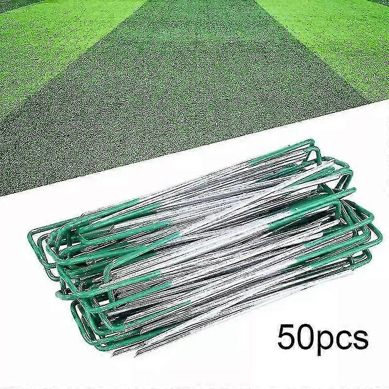 Luxora 50x Half Green Artificial Grass Pegs To Pin Fake Grass, Astro Turf, Weed Membrane, Garden Netting (150mm/6 Inch)