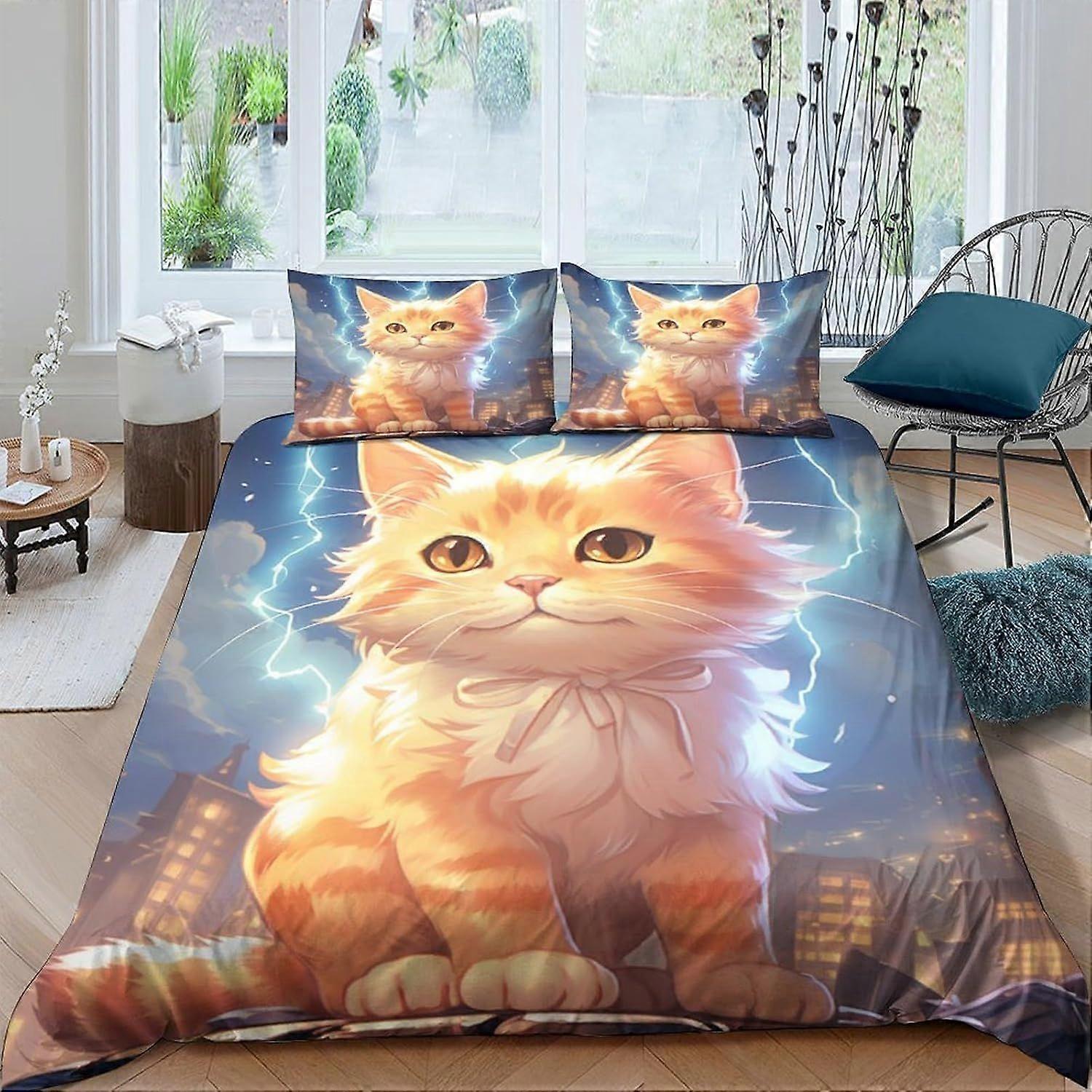 i435 Animal Cat Bedding 3 Piece Set Duvet Cover 3D Printed Quilt Duvet Cover with Zipper Closure, Soft Microfiber Bedding Double u435