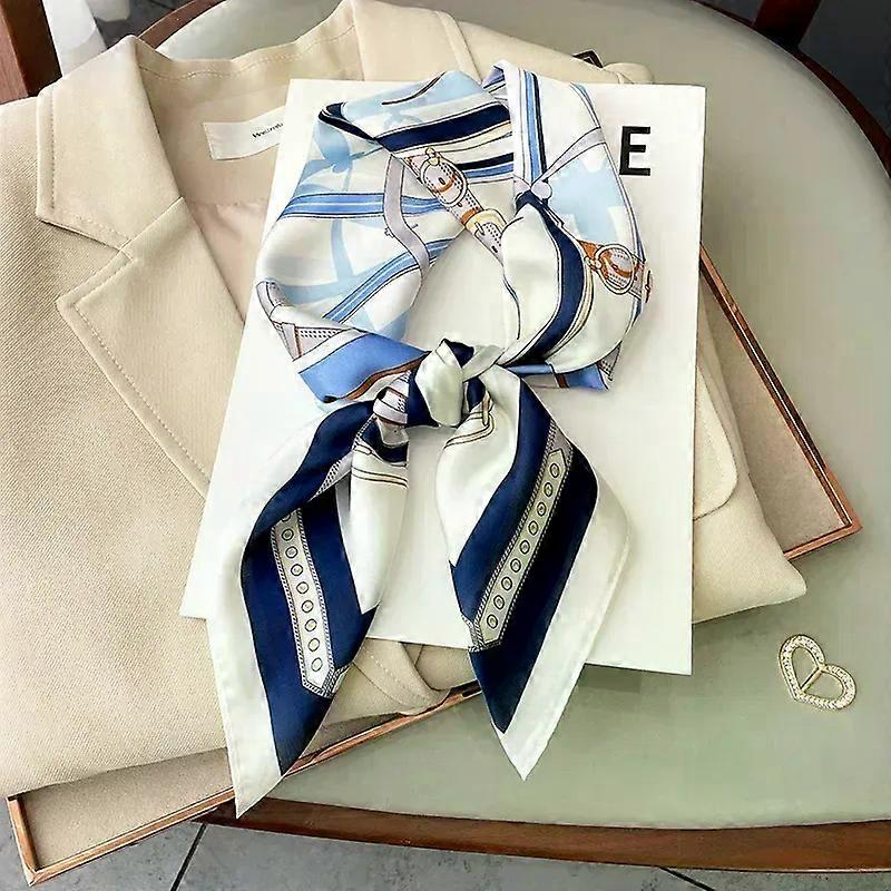 Luxury Design Skinny Square Scarf Women Chain Print Foulard Neckerchief Lady Soft Satin Hairband Head Hijab Bag Ribbon Gift
