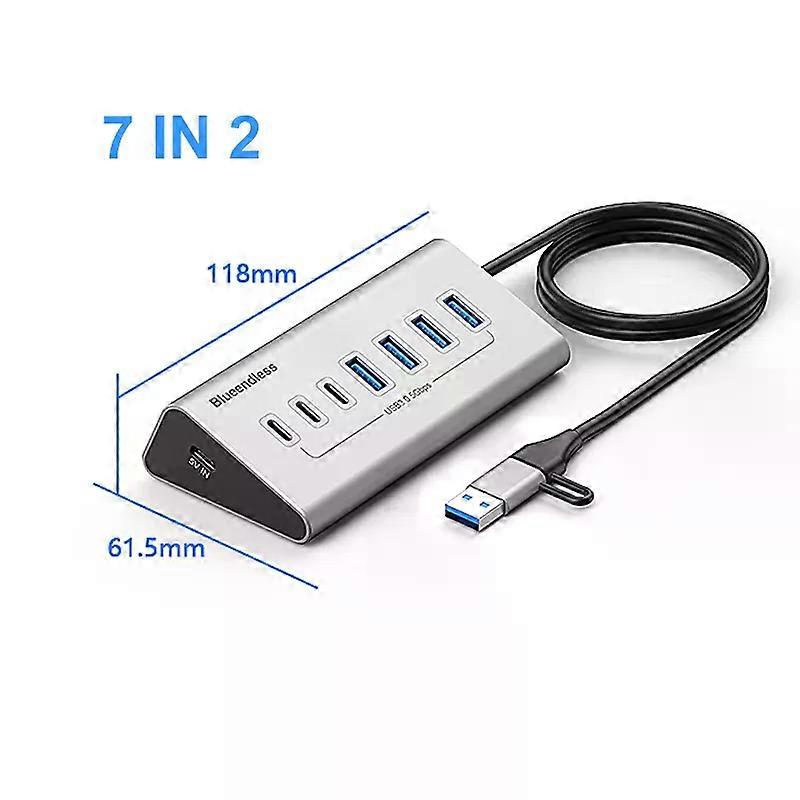 Specifications Compatible Systems:Windows,MacOS,Linux,Others,Chrome OS,iOS,iPad OS,Android Compatible PC Devices:Laptop Hign-concerned Chemical:None Package:Yes Funtion:USB-A,USB-C Standard:USB 3.0 Interface Type:USB Type-C Plug Type:None Ports:10 Origin:Mainland China 5Gbps High Speed Transmission Hub All seven ports comply with the USB 3.0 standard, with actual tested transfer rates reaching up to 450MB/s, ensuring transfer of large files in speed Aluminum Alloy Heat Dissipation Multi Socket Extension The aluminum alloy shell is conducive to heat dissipation, ensuring stable and safe data transmission. Secure & Stable USB Splitter Made of high-quality Aluminum Alloy, providing a better heat dissipation performance Plug & Play Wide Compatibility Drive Free,Compatible with Windows series,Macs,Linux and other systems