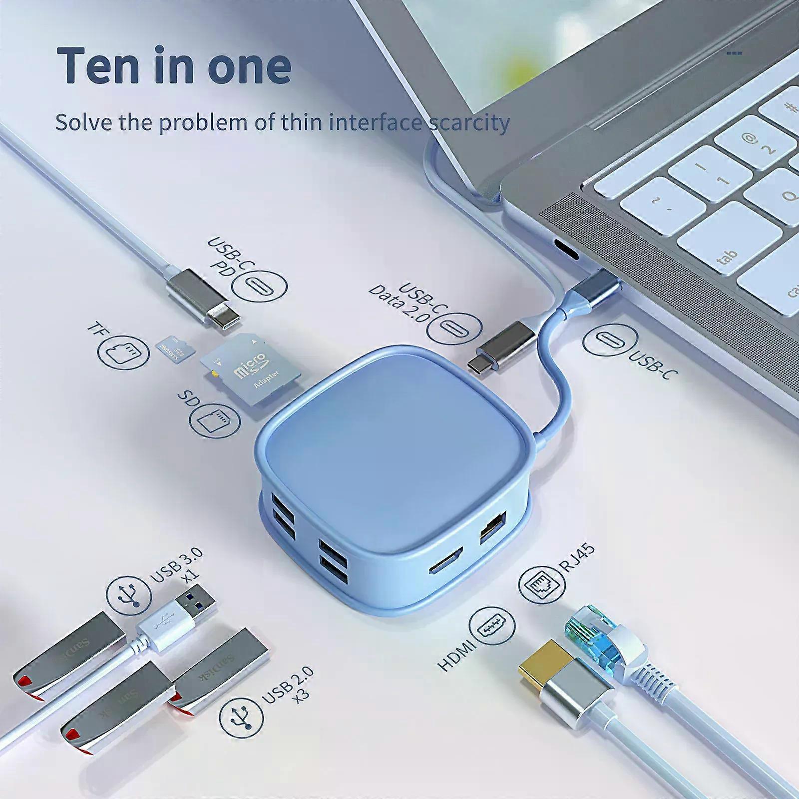 USB C HUB Type C Adapter 10 in 1 To 4K HDMI-compatible Adapter with RJ45 SD/TF Card Reader Fast Charge For Macbook Air USB C HUB