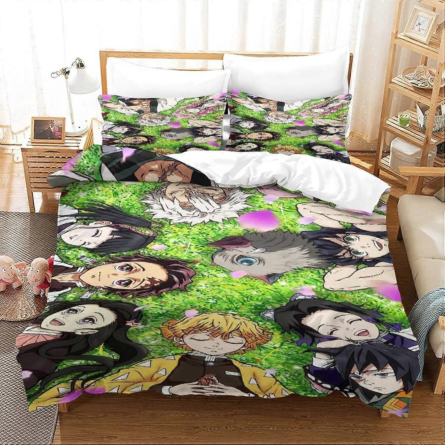 g663 Ghost Slayer Duvet Cover Bedding Set 3D Printed 3 Piece Set with Pillowcase Zipper Closure Soft Microfiber Suitable for Kids Teens Adults Easy Ca