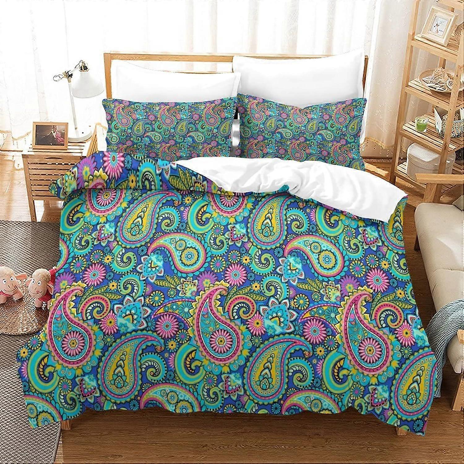 [Material Description] 105g ground cloth [Accessory structure] 1 quilt cover +2 pillowcases (without pillow core) [Product performance] 1 Preferred material: Our three-piece bed set is woven with superfiber fabric, light and soft, comfortable and breathable close feeling can help you get quality sleep at night. Fine workmanship: exquisite workmanship, fine stitching, metal zipper, hidden design, not easy to pilling, high color fastness, after high temperature setting is not easy to shrink dyeing, durable. Easy to clean: easy to care, room temperature hand washing machine can be washed, not bleach. Thickened design: Thickened design provides better feel and warmth, so that you can have a warm environment at night. [Application scenario] Can be used as bedding in any room such as family, hotel, theme house, holiday house, etc., or as a gift for family, friends, colleagues. [Washing instructions] Can be washed by hand or machine, do not soak for a long time, do not bleach, washing liquid temperature should not exceed 45C. [Special note] This size data is measured under the tile, due to different measurement methods, the error is within 2-8929cm is a normal phenomenon [warm reminder] the picture display effect is for reference only, the final effect is subject to the actual! Due to objective factors such as production batches, machinery and equipment, it is difficult to avoid or there will be small color difference, position and size errors, such as the above problems are normal phenomena, will not be included in the scope of after-sales treatment.
