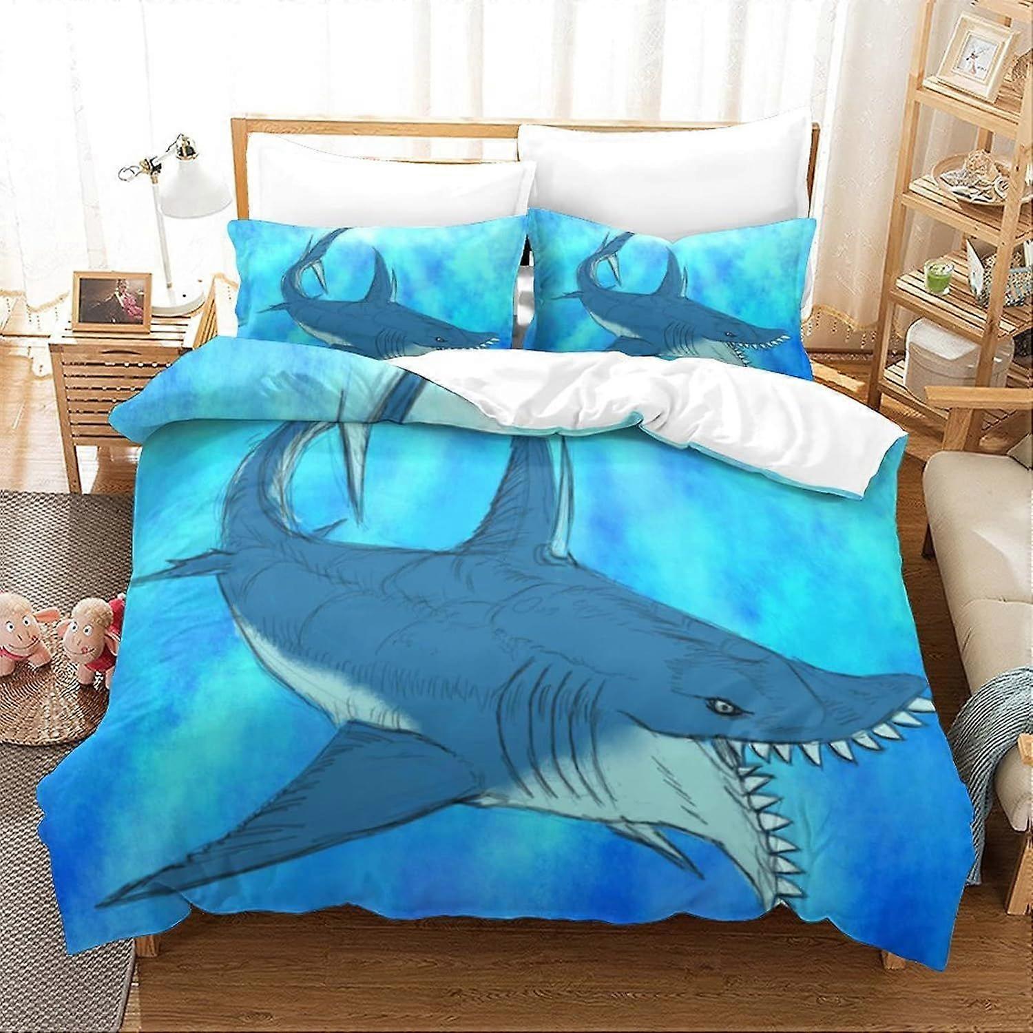 g453 Great White Shark 3D Print Duvet Cover Bedding Sets Quilt Bed Covers with Zipper 3-piece Set Soft Easy Care for Young And Kids Adults f453