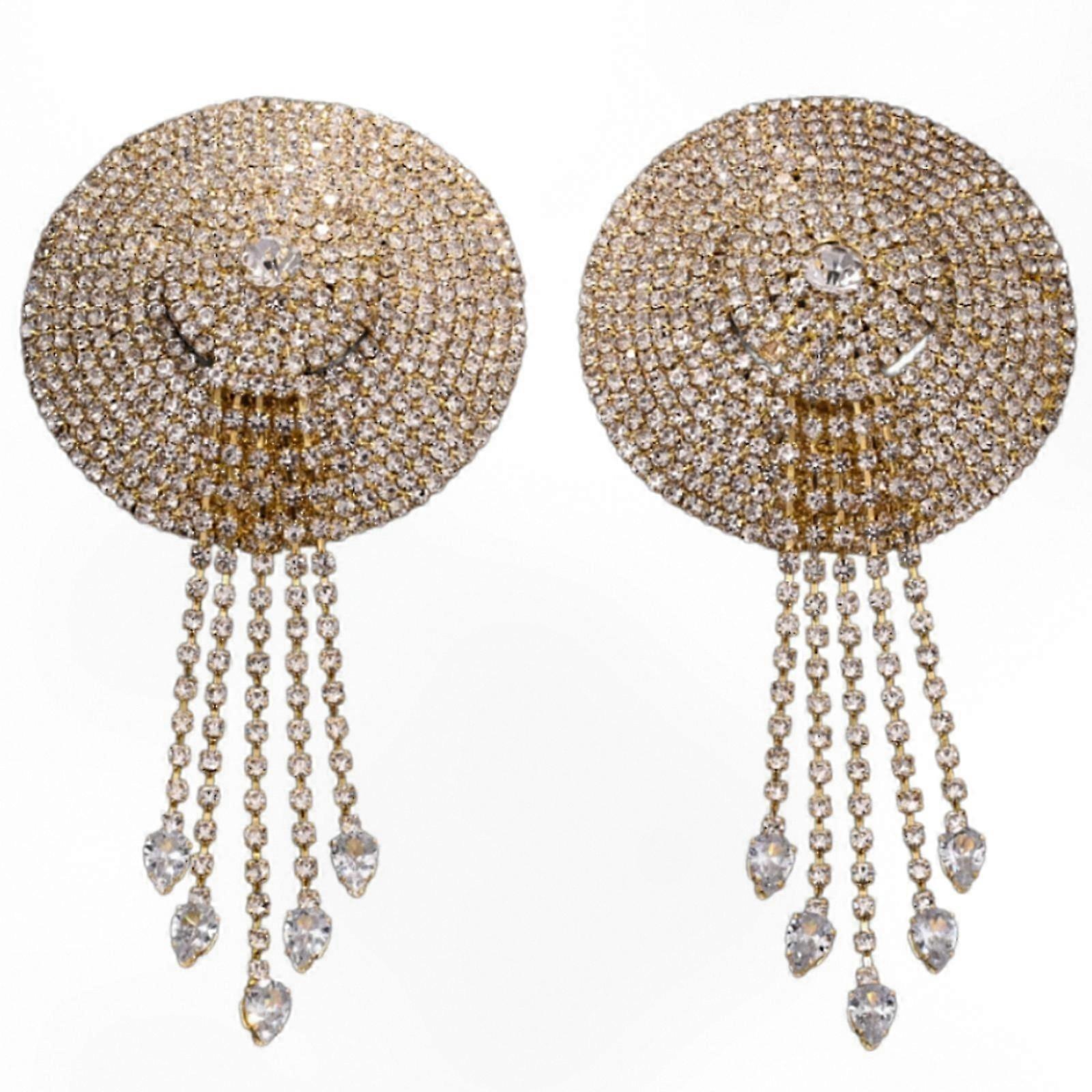 Shimmering Rhinestone Pasties with Tassels and Silver Body Chain for Women's Party & Festival Attire