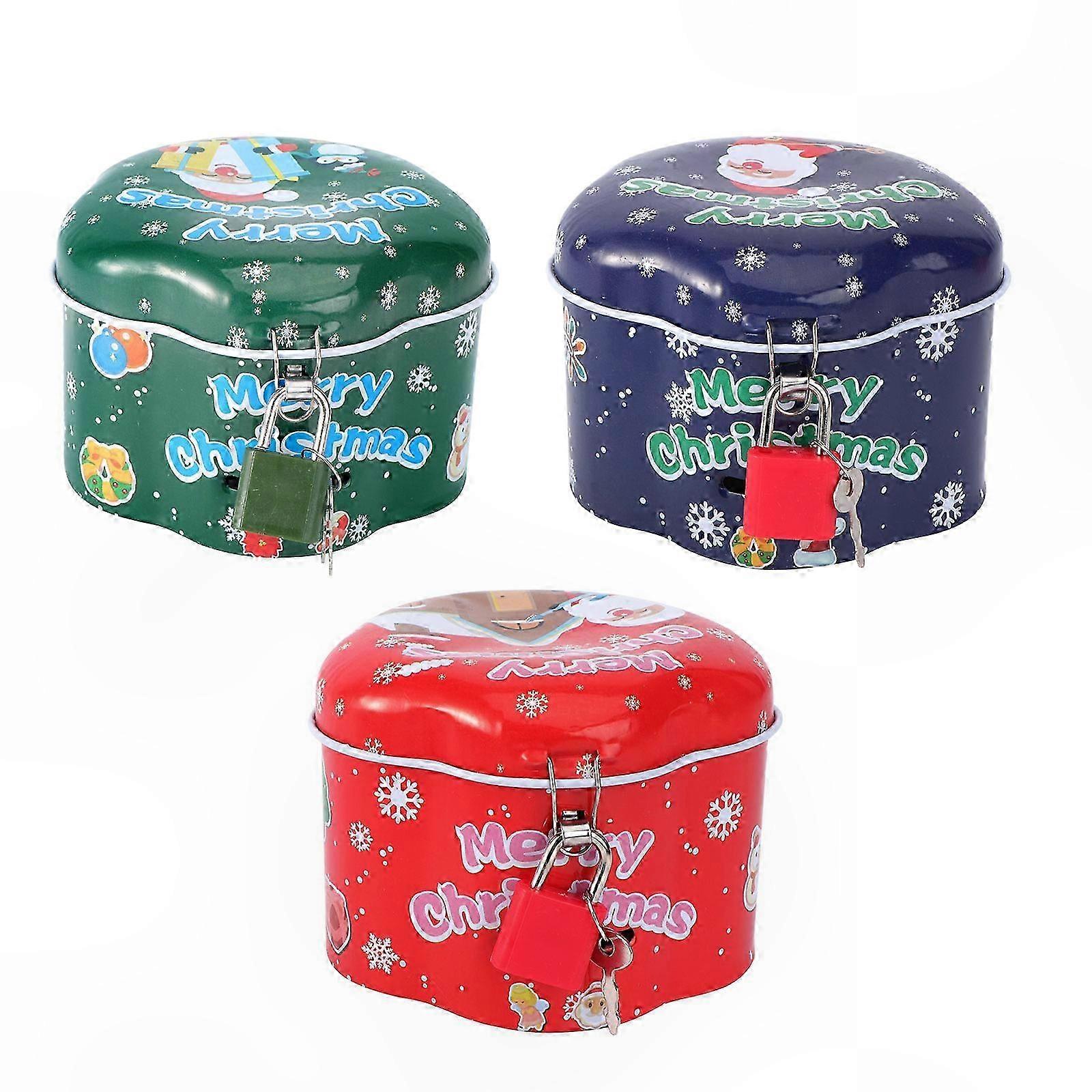 Green Tinplate Candy Cane Christmas Money Boxes for Kids, 3 Pieces