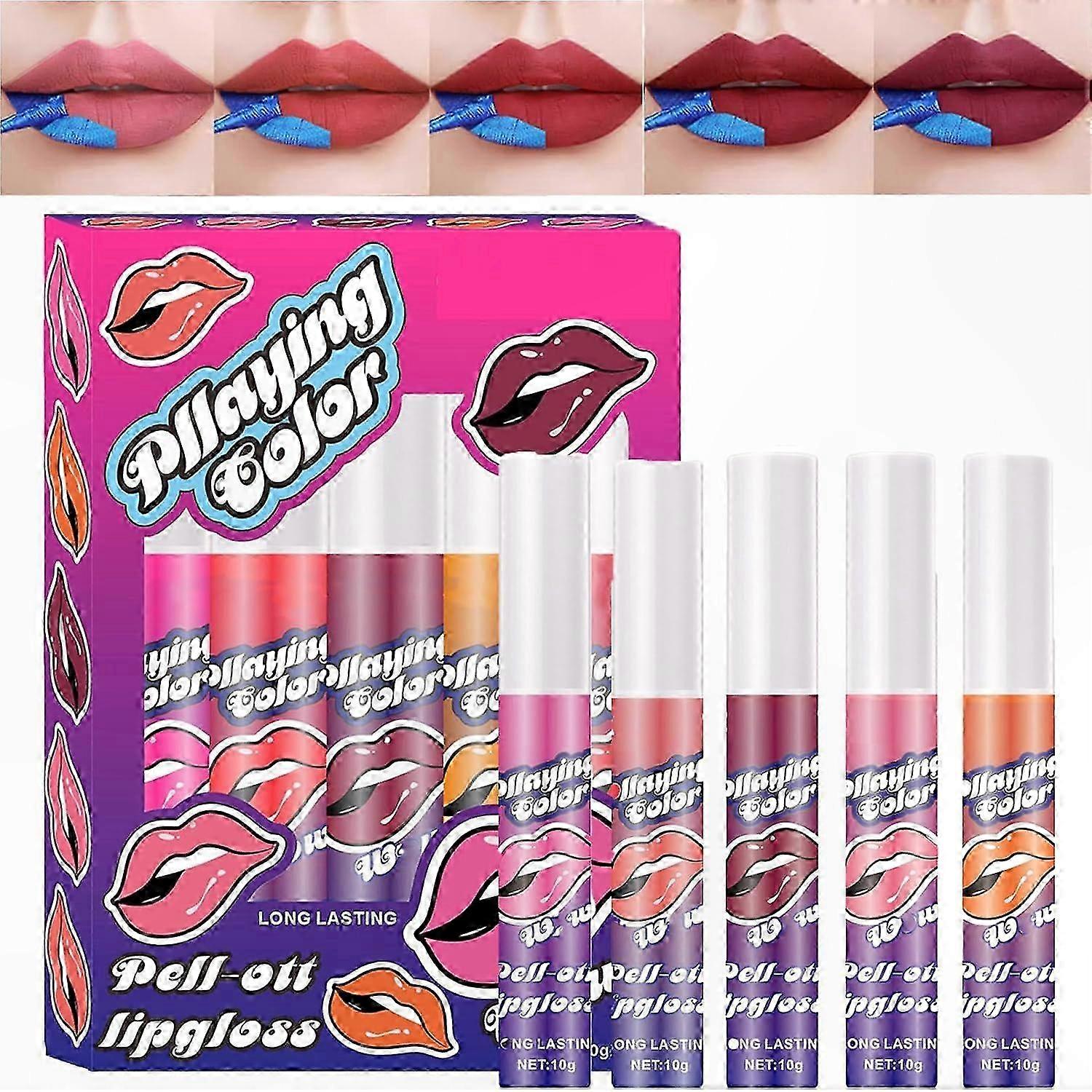 Colorful Lip Stain Set, Peel-Off Lip Gloss for Women, Long-Lasting Tint with Extreme Shine, 5-Piece Makeup Kit