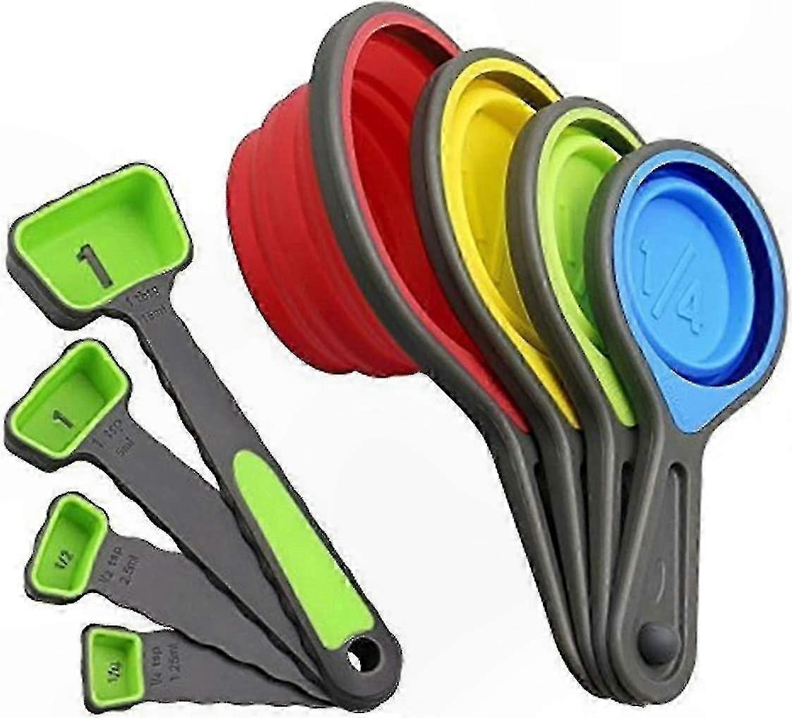 Silicone Collapsible Measuring Cups and Spoons Set - 8 Pieces for Kitchen, Camping, and Pet Food Use
