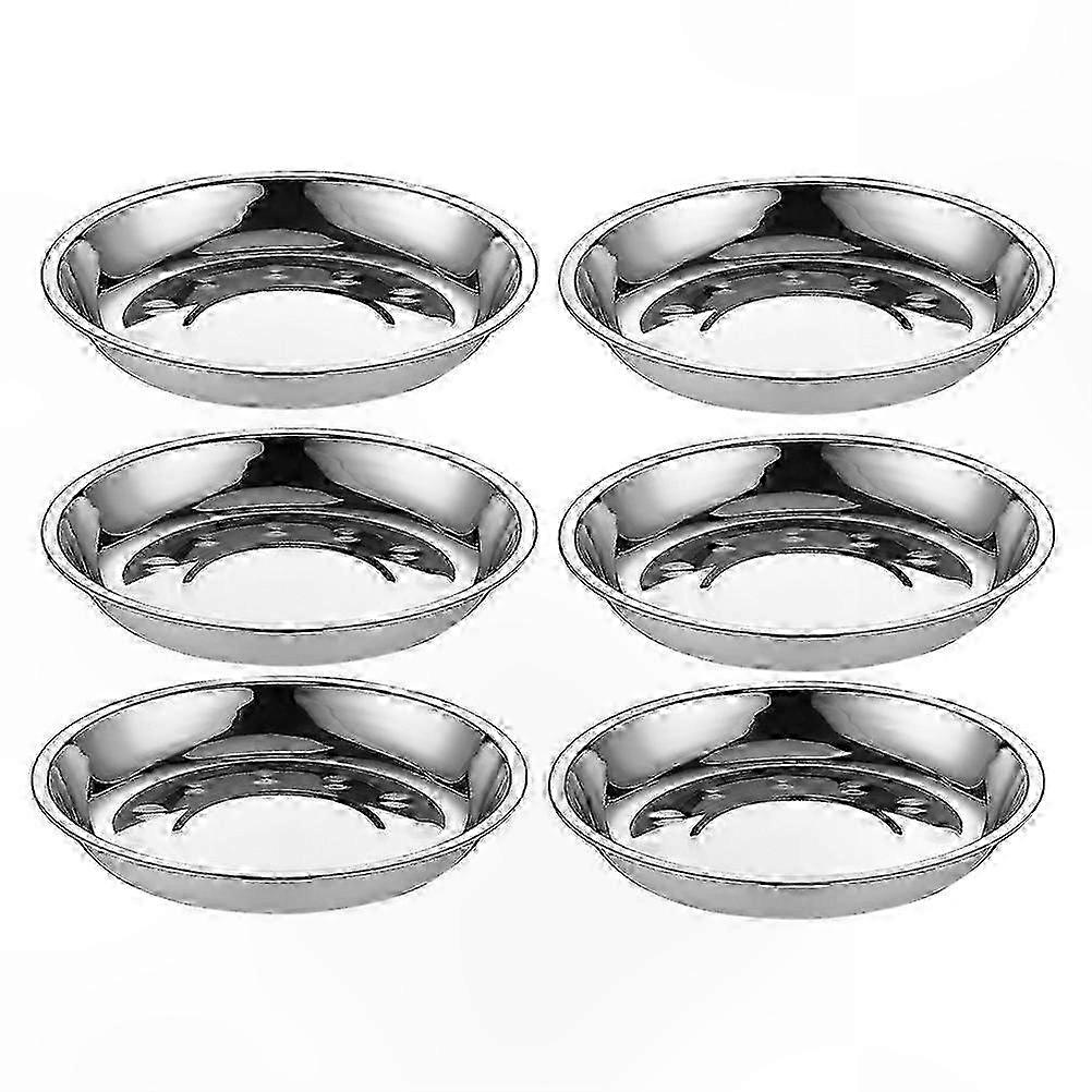 6-Piece Stainless Steel Round Plates for Fruit, Pasta, and Meals (Silver)