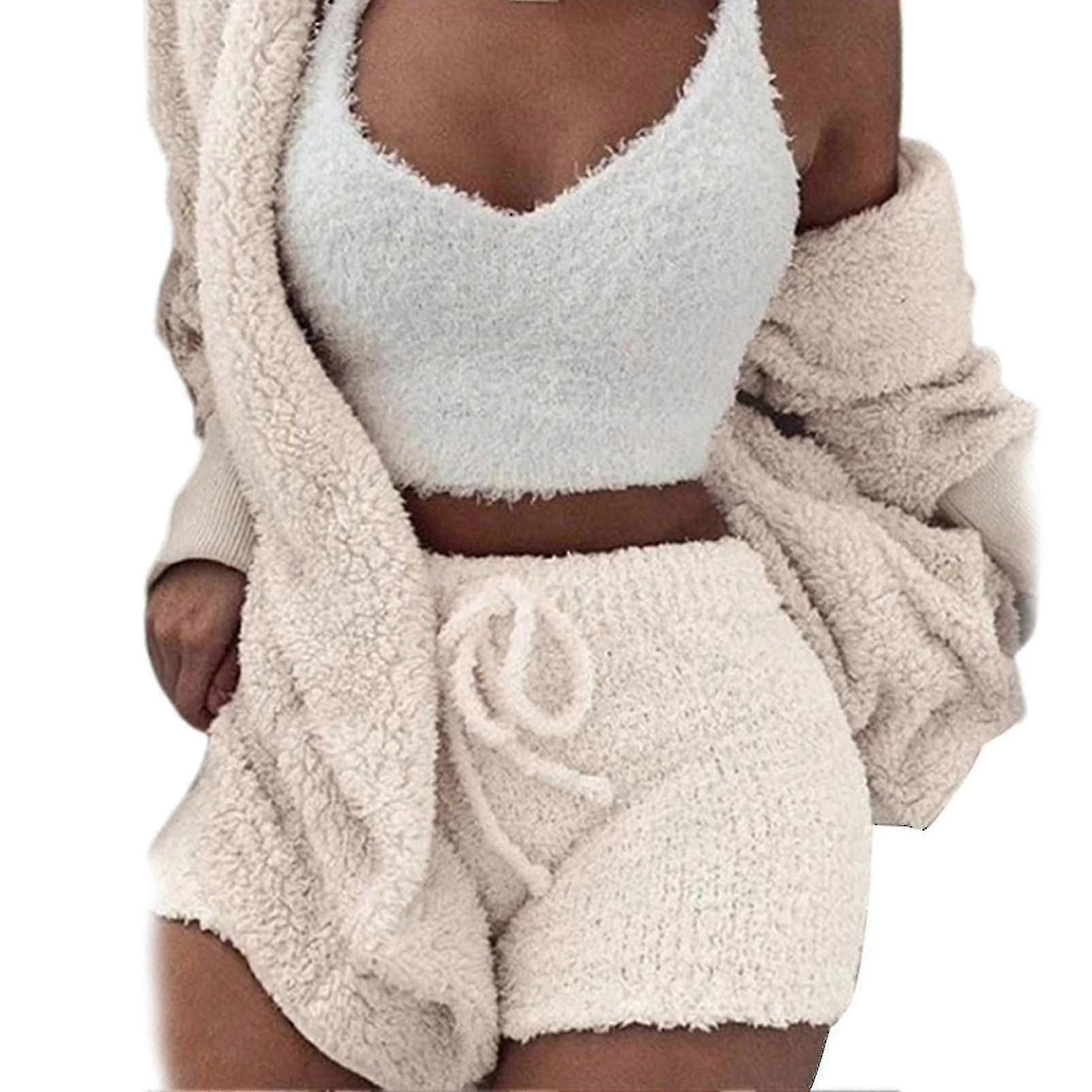 3pcs/Set Cozy Knit Set Shorts + Sweater + Coat Casual Warm Suit For Women.z