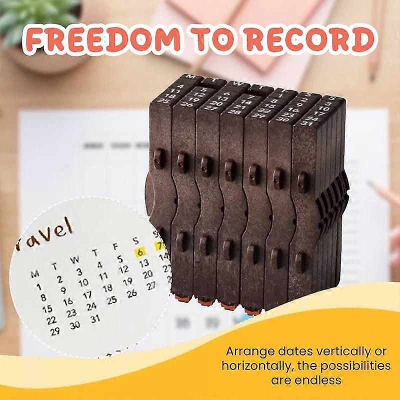 Set contents: 38 rubber seals (7 days + 31 dates), 2 pieces blank Rubber stamp size: 24 x 47 mm (5 weeks), rubber pad: 2.3 x 3.2 mm Specifications 1:The uneven parts of the handle can be connected vertically or horizontally. Specifications 2:Connect the top and bottom of the pattern upside down to use as blank Specification 3: Blank can be used to secure columns Note: Please prepare a separate ink pad. Recommended Ink Pad: Iromoo Series