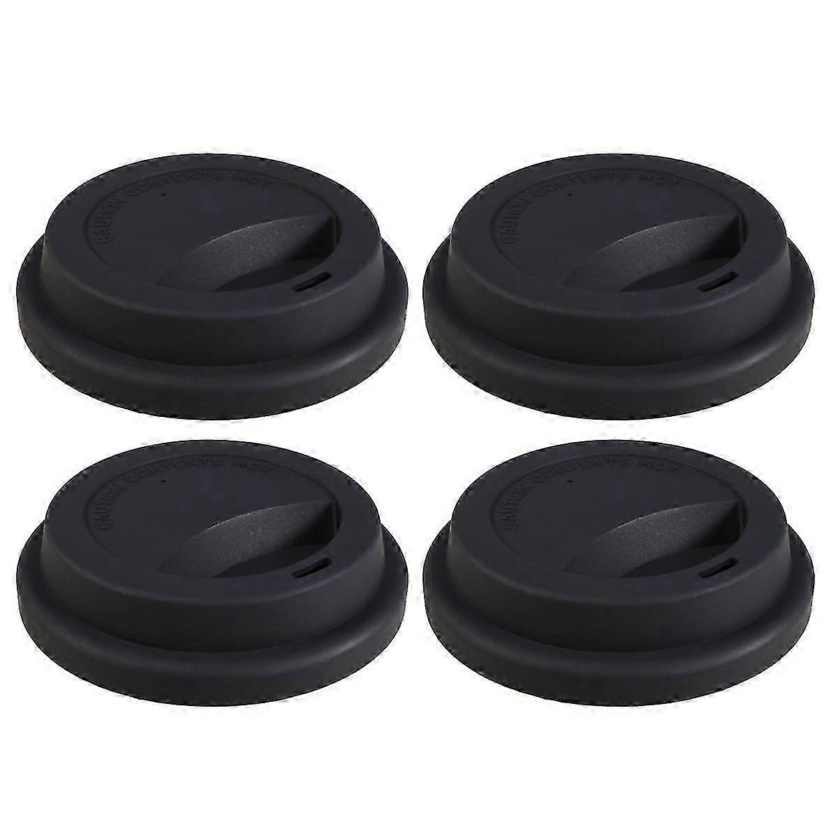 4pcs silicone polymer Coffee Mug Lids Reusable Travel Cup Covers Dustproof Black