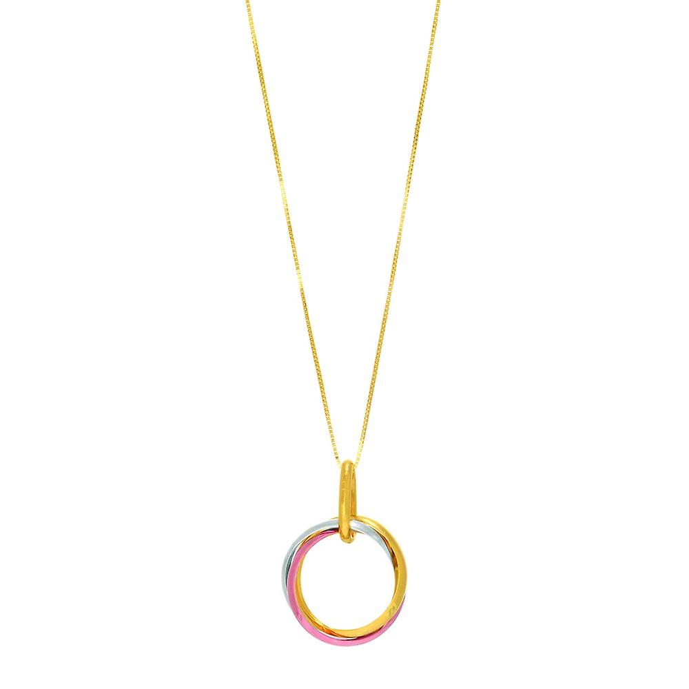 14k Rose Yellow White Gold 16.0x22.0 3- Open Ring Pendant 14kt Yellow Gold 0.6mm Box Necklace 18 In Pendant for Women