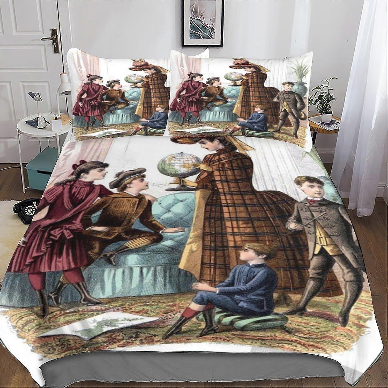 u187 The Victorian Era Mattress Comforter Set 3 Piece Pioneers of The Times Printed Bedding Set 3 Piece Comforter Cover with Zip for Teenagers & Adult