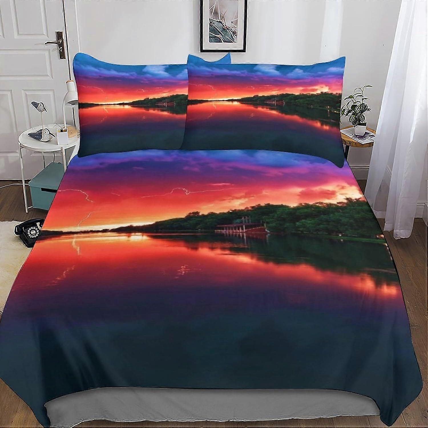 u380 3 Piece Abstract Art Comforter Set 3D Beautiful Nature Printed Bedding Comforter Set with Zip Closure for Girls, Super Soft Microfibre Bedding m3