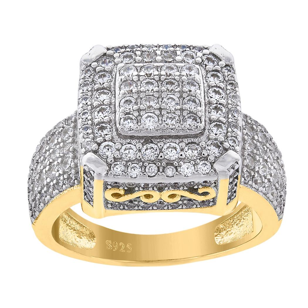 925 Sterling Silver Yellow tone Womens Cubic Zirconia Cluster Square Head Fashion Ring Band Ring for Women and Men - Rin