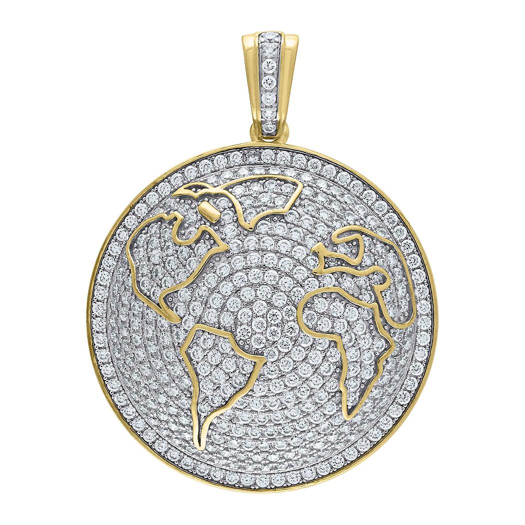 925 Sterling Silver Yellow Cubic Zirconia World Planet Earth 19.14gm Unisex Charm Pendant Necklace Pendant for Women
