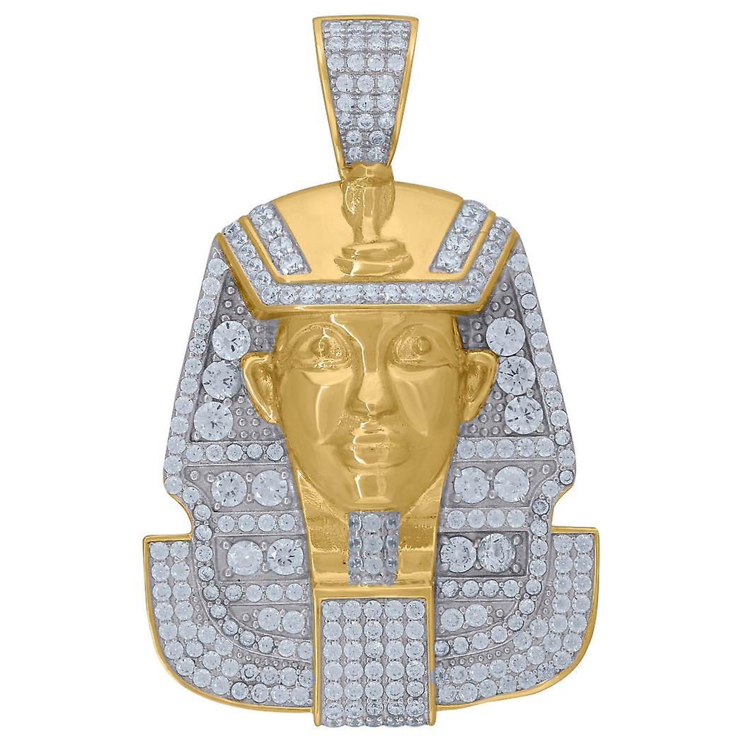 925 Sterling Silver Yellow tone Unisex CZ Egyptian Pharaoh Head Religious Charm Pendant Necklace 4 Pendant for Women
