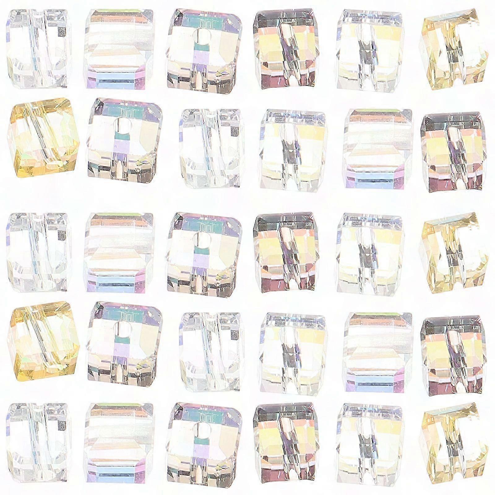 100Pcs Square Glass Cube Beads for Jewelry Making, Spacer Beads