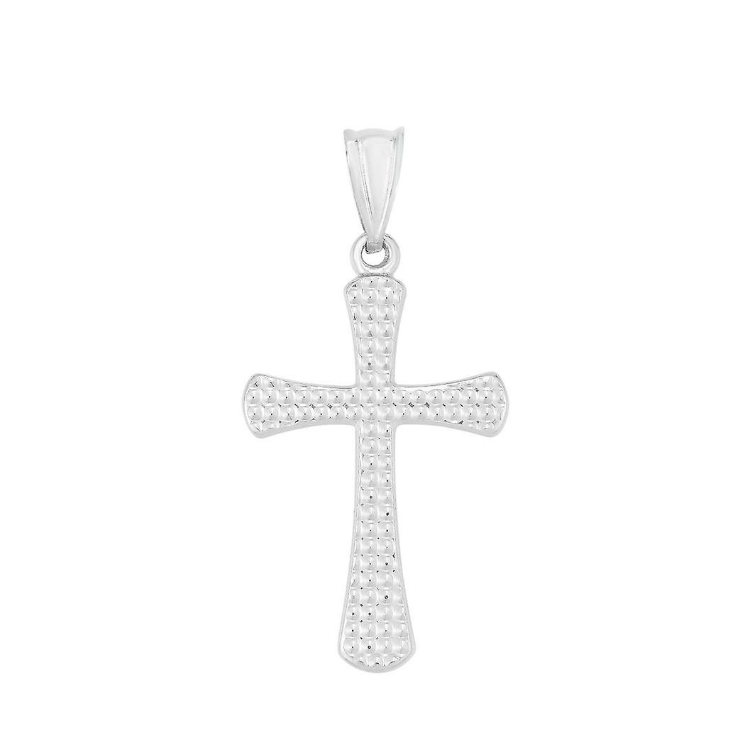 14k Gold White Finish Sparkle-Cut Religious Faith Cross Pendant Necklace Pendant for Women