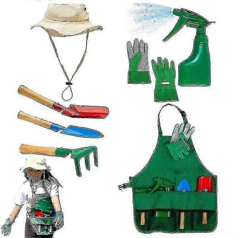 8-Piece Mini Garden Tool Set with Gloves and Apron for Kids' Pretend Play