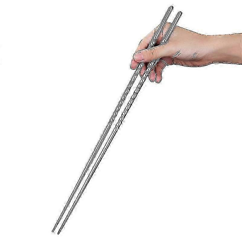 3-Pair Set of 15.2 Inch Stainless Steel Cooking Chopsticks - Anti-Slip Threaded Design