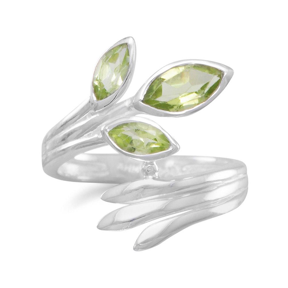 925 Sterling Silver Fan Wrap Ring Three Marquise Peridots Stones 3mm X 7mm 4mm X 8mm Ring for Women - Ring Size: 5 to 10