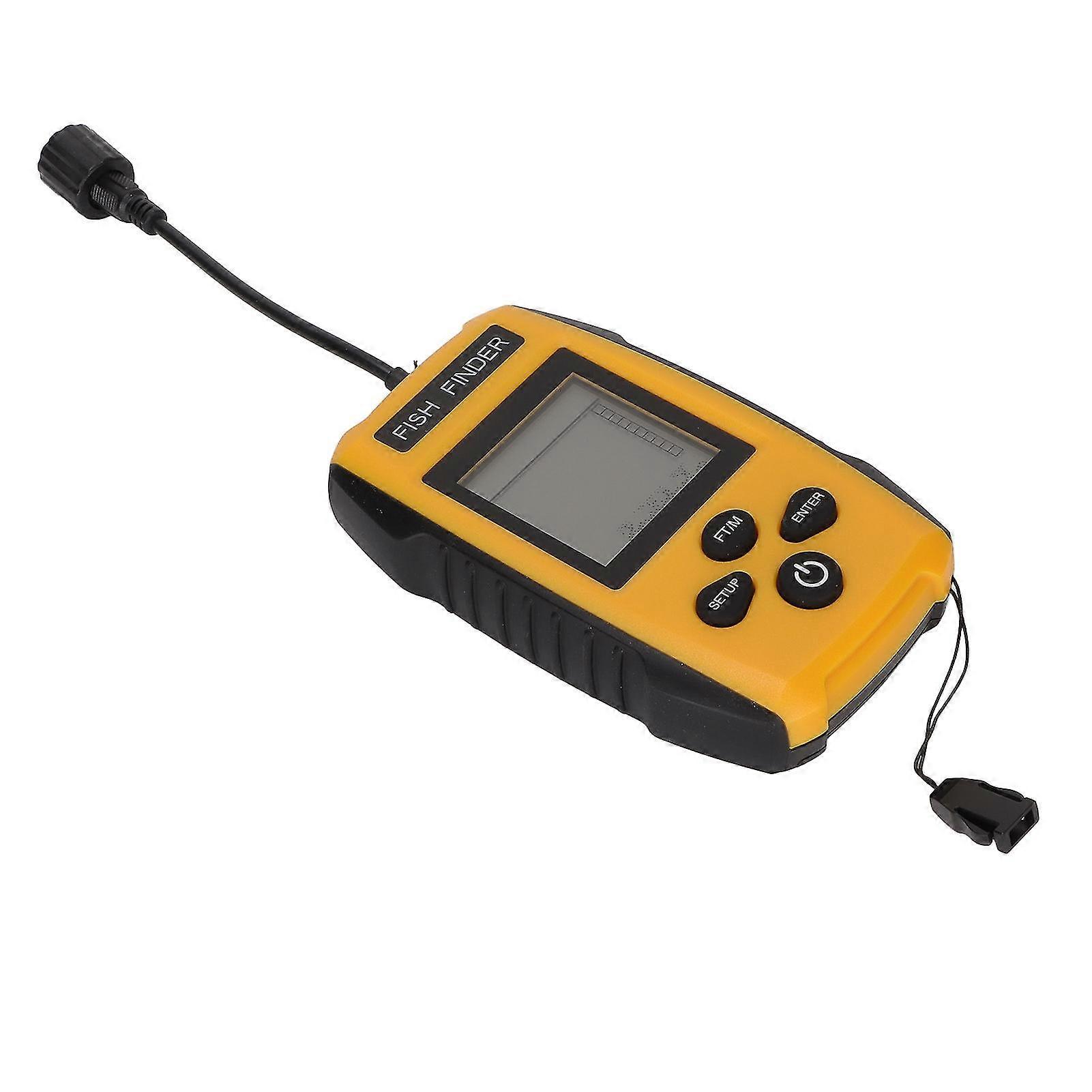 1、LCD Display: Portable fish finder detects and displays water depth, approximate fish location, fish size, short height of weeds, sand and rocks on the bottom. 2、0.6‑2m Sonar Depth Detector: The detection depth range is 2 feet (0.6 m) to 328 feet (100 m) below the fishing sonar sensor. Fishing sonar sensor with 25ft cable and removable transducer float. 3、Multifunction Mode: 5 modes of sensitivity selection; power saving mode; backlight mode; fish alarm; measurement unit. The fishing depth sounder supports 4‑5 hours of continuous battery operation. 4、Wide Application: Can be used for offshore fishing, kayak fishing, ice fishing, lake fishing, sea fishing, river fishing, etc. This will be one of your best fishing accessories. 5、Easy to Carry: We provided the fish finder with a lanyard so you can wear it around your neck when you're busy on the kayak. You can easily store the fishfinder in the tackle box. Note: Due to the light and screen setting difference, the item's color may be slightly different from the pictures. Please allow slight dimension difference due to different manual measurement.