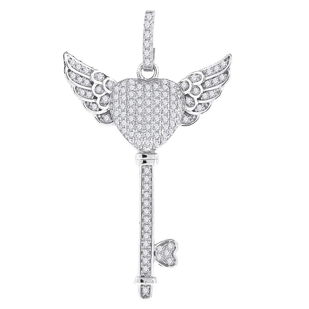 925 Sterling Silver Womens Round Cubic Zirconia Wings Heart Key Cluster Fashion Charm Pendant - 4.0 Grams In Sterling Silver - - This Item Does Not Ship With a Chain - [ Potential Enhancement Methods: cubic zirconia ] - Synthetic. Some are covered with a product that makes the stone more durable. - [ Care and Handling: cubic zirconia ] - Clean with warm soapy water and a soft cloth. -