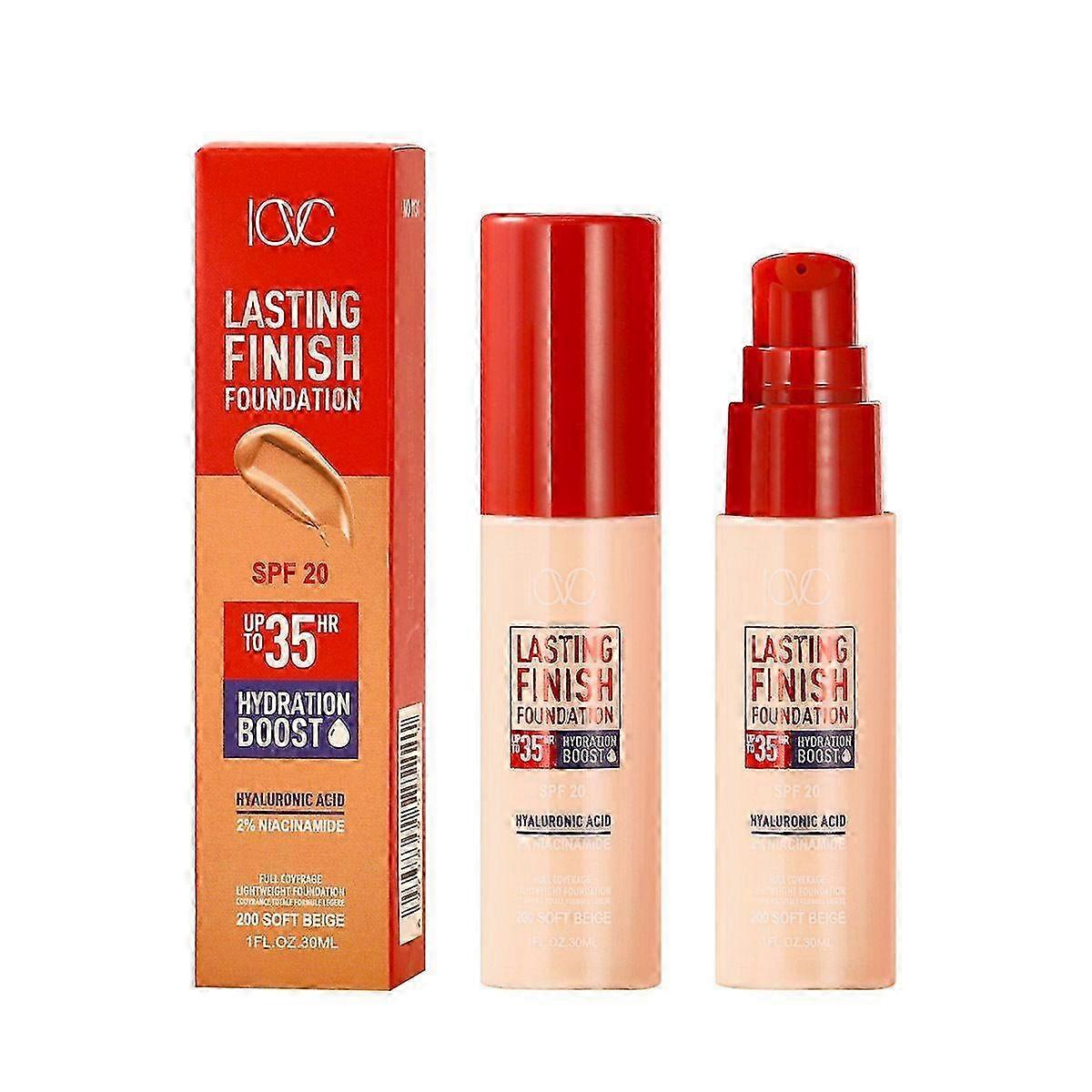 Lasting Finish 35hr Foundation 200 Soft Beige, Full Coverage, Hydrating, Spf20, Hyaluronic Acid, Vitamin E, 2% Niacinamide, All Day Wear, Vegan, Cruel
