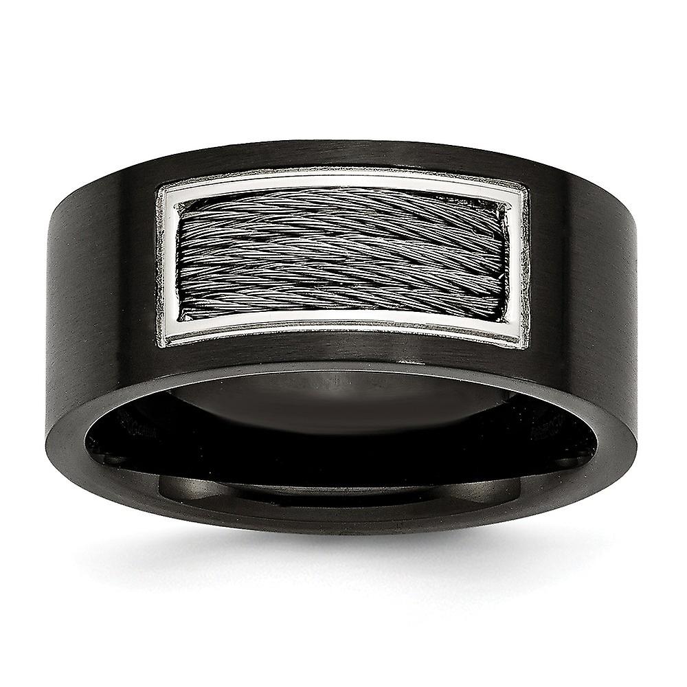 Stainless Steel Brushed Polished Ip Black Plated With Wire Inlay Ring Ring for Women - Ring Size: 8 to 14